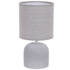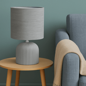 Enhance your home's aesthetic with the Grey Ribbed Ceramic Table Lamp. This stylish lamp boasts a sophisticated ribbed ceramic base paired with a tasteful fabric shade, offering both functionality and a touch of elegance to any space.