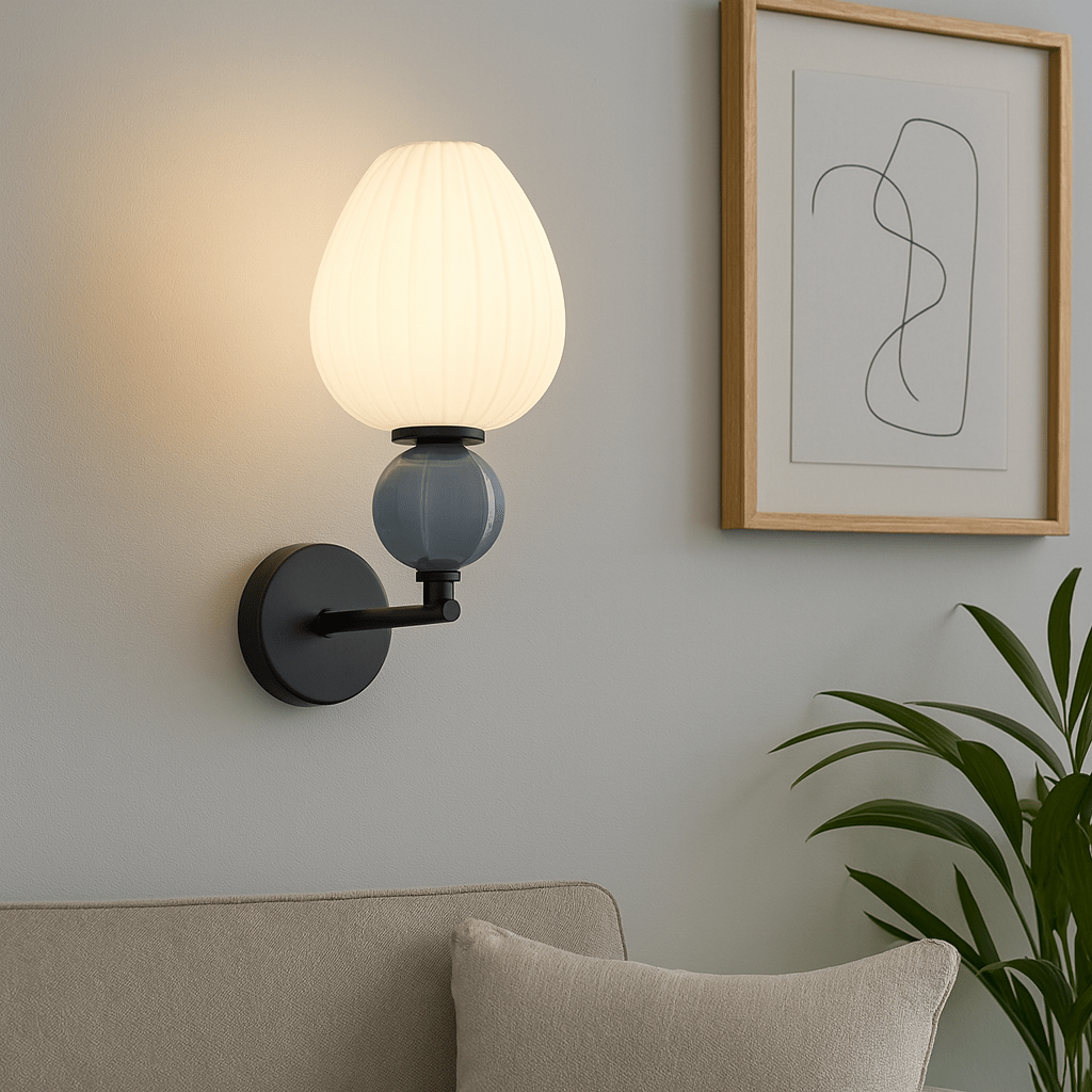 This stunning ceramic and opal glass indoor wall light adds a sophisticated touch to any setting with its off-white and blue-grey color palette. Perfect for design enthusiasts seeking ambient illumination, it combines functionality with style, creating an inviting atmosphere in homes or offices.