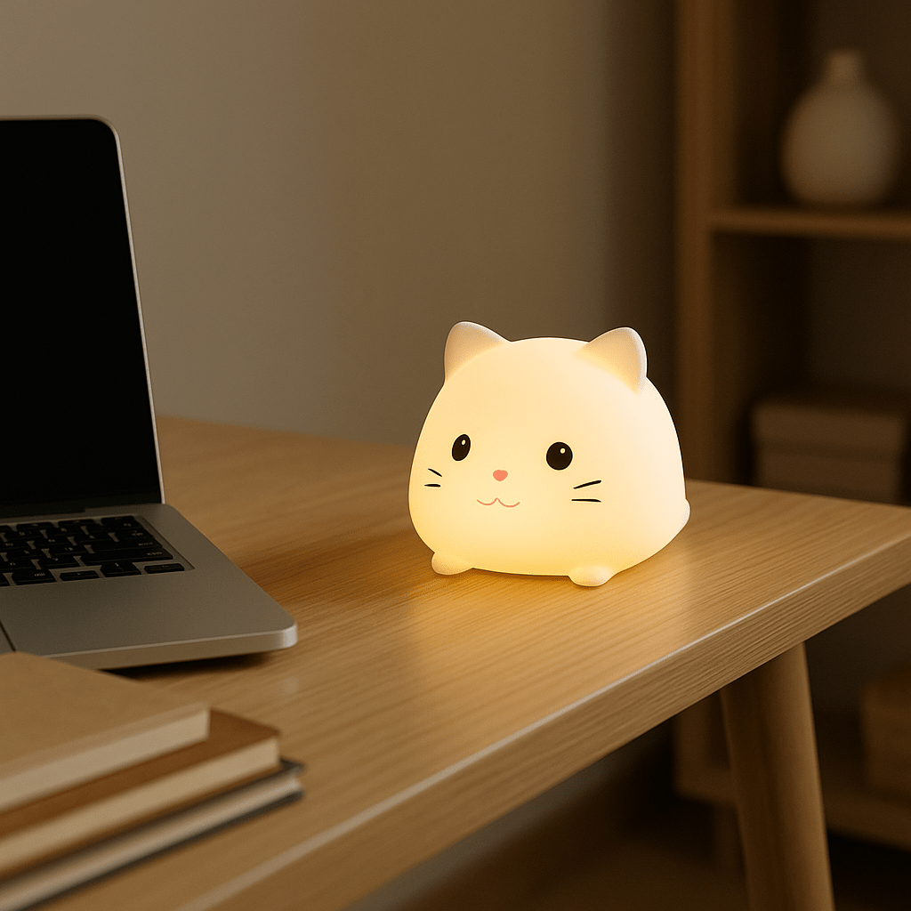 This innovative night light combines functional lighting with a playful design, perfect for both children and adults. Its compact, cat-themed silhouette adds charm to any bedside or desktop space, making nighttime soothing and enjoyable.