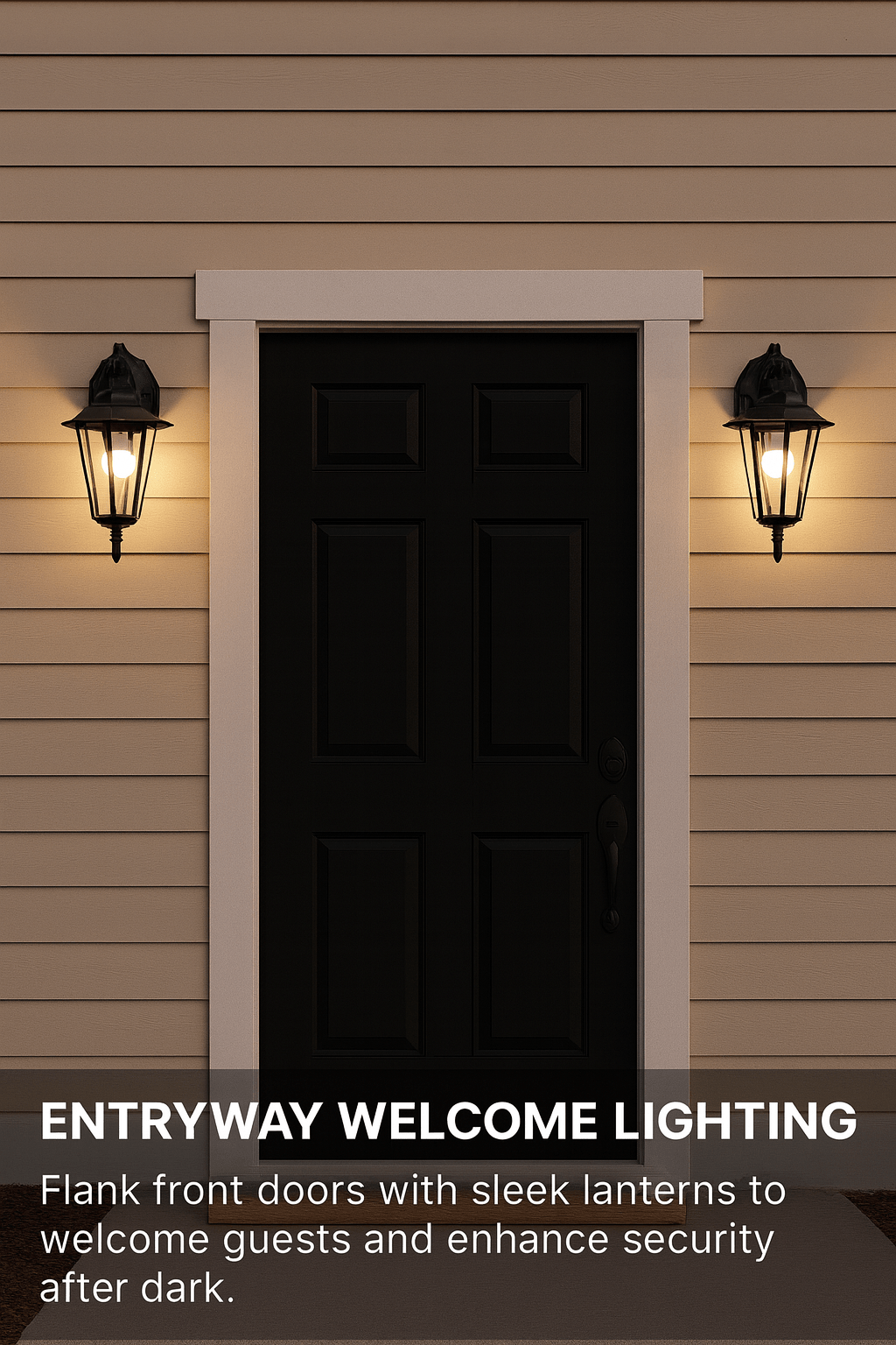 Flank front doors with sleek lanterns to welcome guests and enhance security after dark.