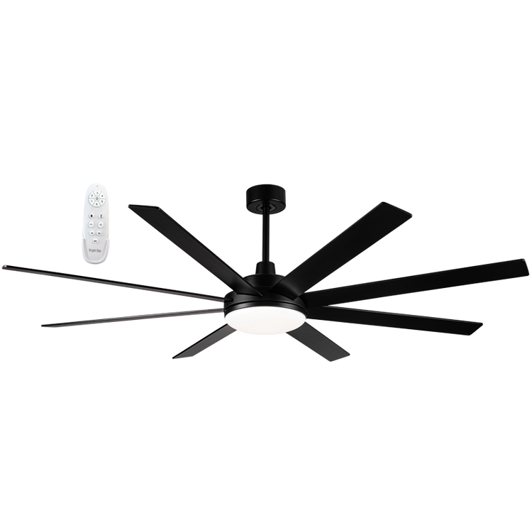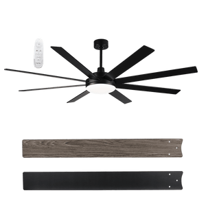 - Matt black ceiling fan with 8 reversible plywood blades (Dark Wood / Black)