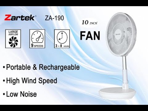 Stay cool anywhere with the Zartek ZA-190 Rechargeable 10-Inch Fan, a versatile and powerful fan designed for both indoor and outdoor use. Featuring an extendable and foldable design, this fan easily transitions from desk to floor height, making it ideal for home, office, camping, and outdoor events.
