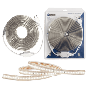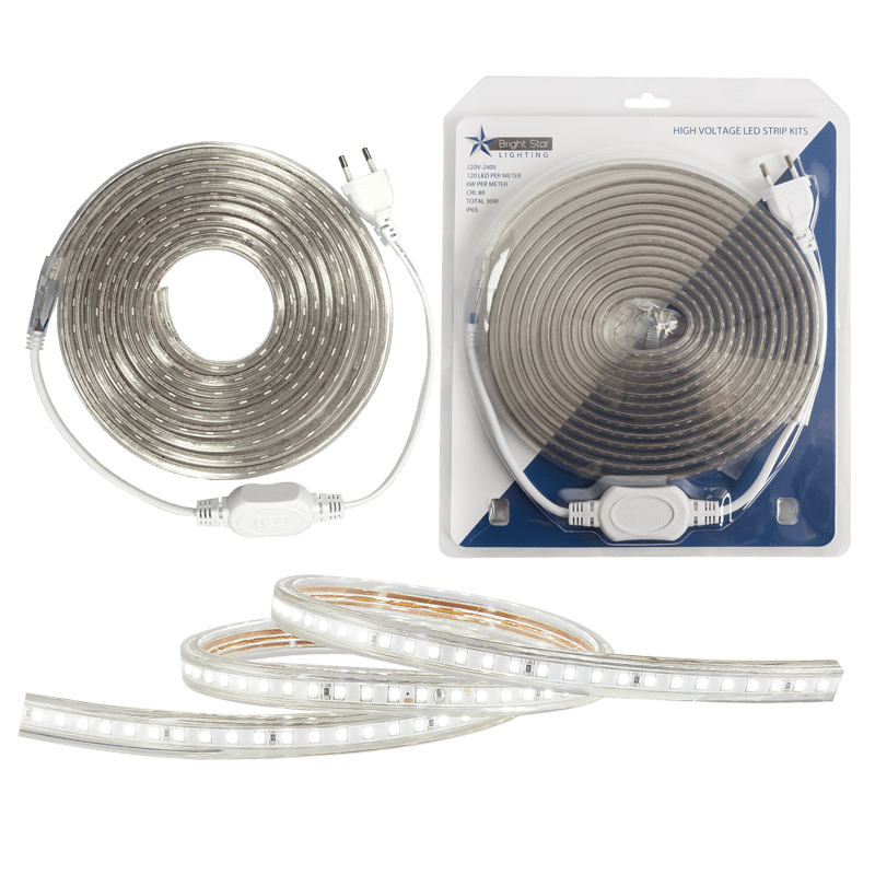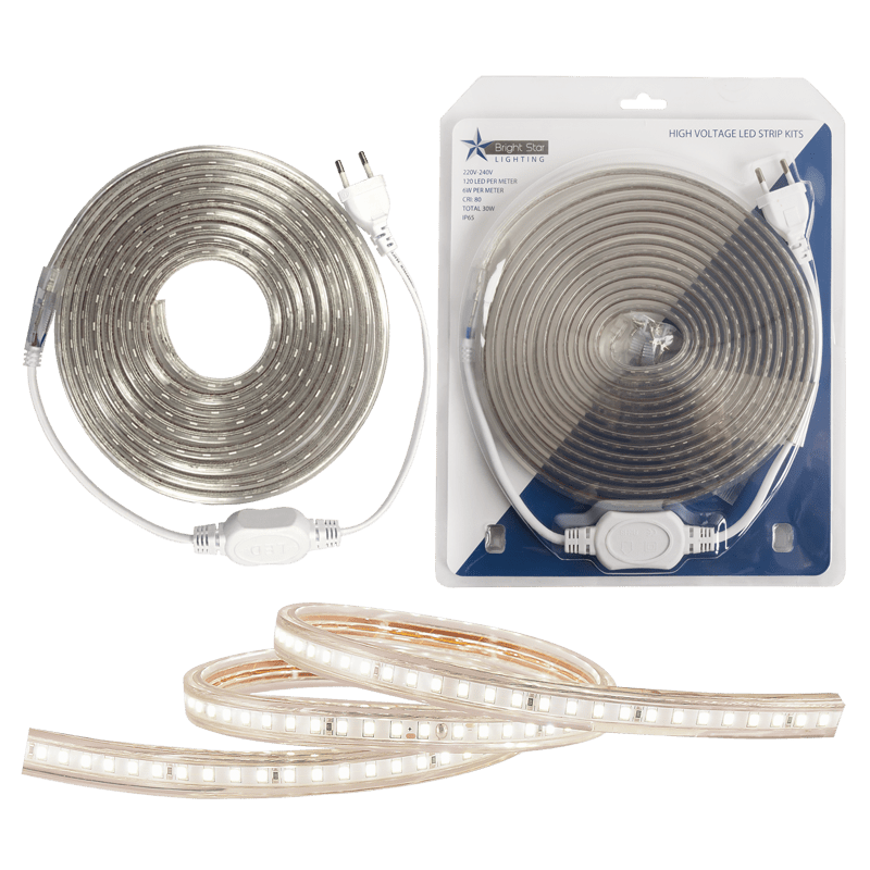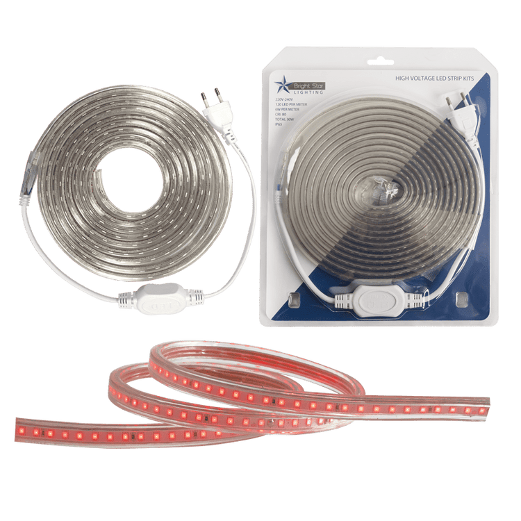 Elevate your home's interior with the LED 220V Strip Light 5m Kit. This easy-to-use kit comes complete with all components required to produce LED illumination in a variety of color options, including warm white, cool white, blue, red, and green. Enjoy a bright and professional looking living space with this hassle-free lighting solution. 2 Year Warranty!