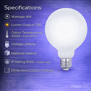 This dimmable LED globe gives you a clean, comfortable cool white light for everyday indoor use, while the opal frosted finish softens the glare and makes it a great choice when you want both general lighting and a bit of feature appeal in open fittings, pendants or lamps.