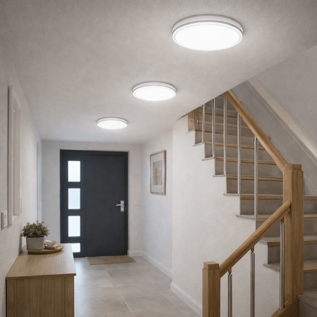 These LED ceiling/bulkhead lights are a practical, low-maintenance choice for bright indoor general lighting—ideal for spaces like an entrance hall, stairs, or an office where you want a clean, functional light that switches on reliably every day while keeping running costs down.