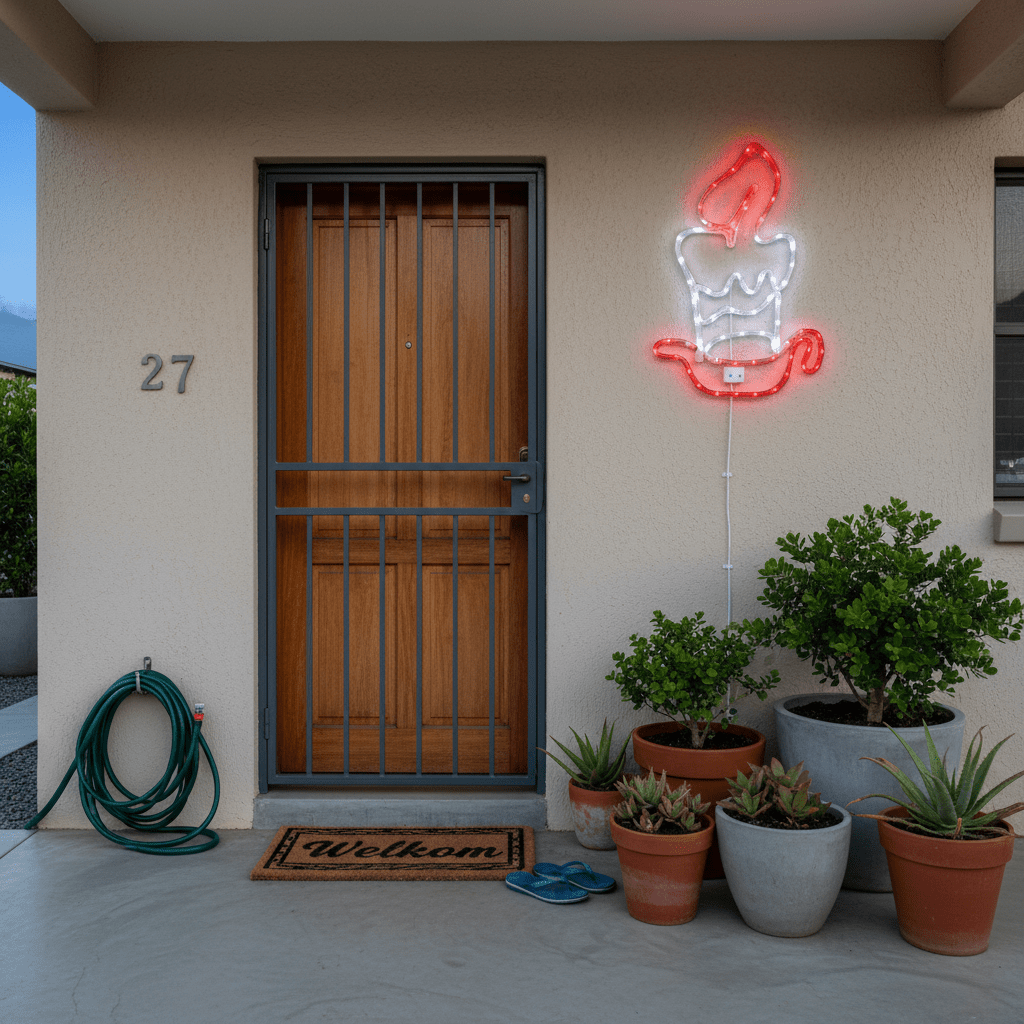 This candle motif makes a simple seasonal focal point in a lounge — sit it above a mantel or on a side wall to add soft, inviting light during evening get-togethers. It’s equally good on a front porch or beside a doorway, where its classic shape signals festive cheer to guests and people walking past. The look is traditional without feeling fussy, so it blends easily with everyday décor.