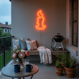Add a cosy festive glow to your outdoor entertaining area or living room view with this orange candle-style Christmas motif. It’s ideal for decorative feature and accent lighting—perfect for creating a welcoming focal point on a wall, doorway, patio or balcony where you want that classic Christmas feel with a warm, candle-like look.
