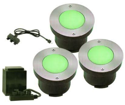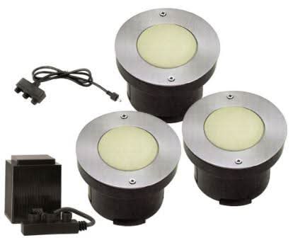 The kit includes 3 light fittings for comprehensive coverage around decks, pathways, or seating areas.