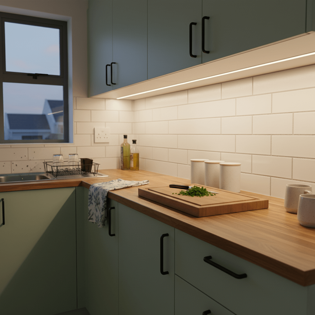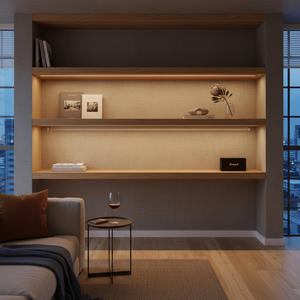 Under-cabinet kitchen runs: Recess into melamine or plywood carcasses for a continuous, dot-free task light over benches, using RGBW to switch between crisp work light and evening ambience.