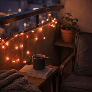 Bedroom headboard fairy glow: Weave the 2m string along a headboard to create a cosy reading glow, with the battery pack tucked behind for clutter-free, plug-free ambience.