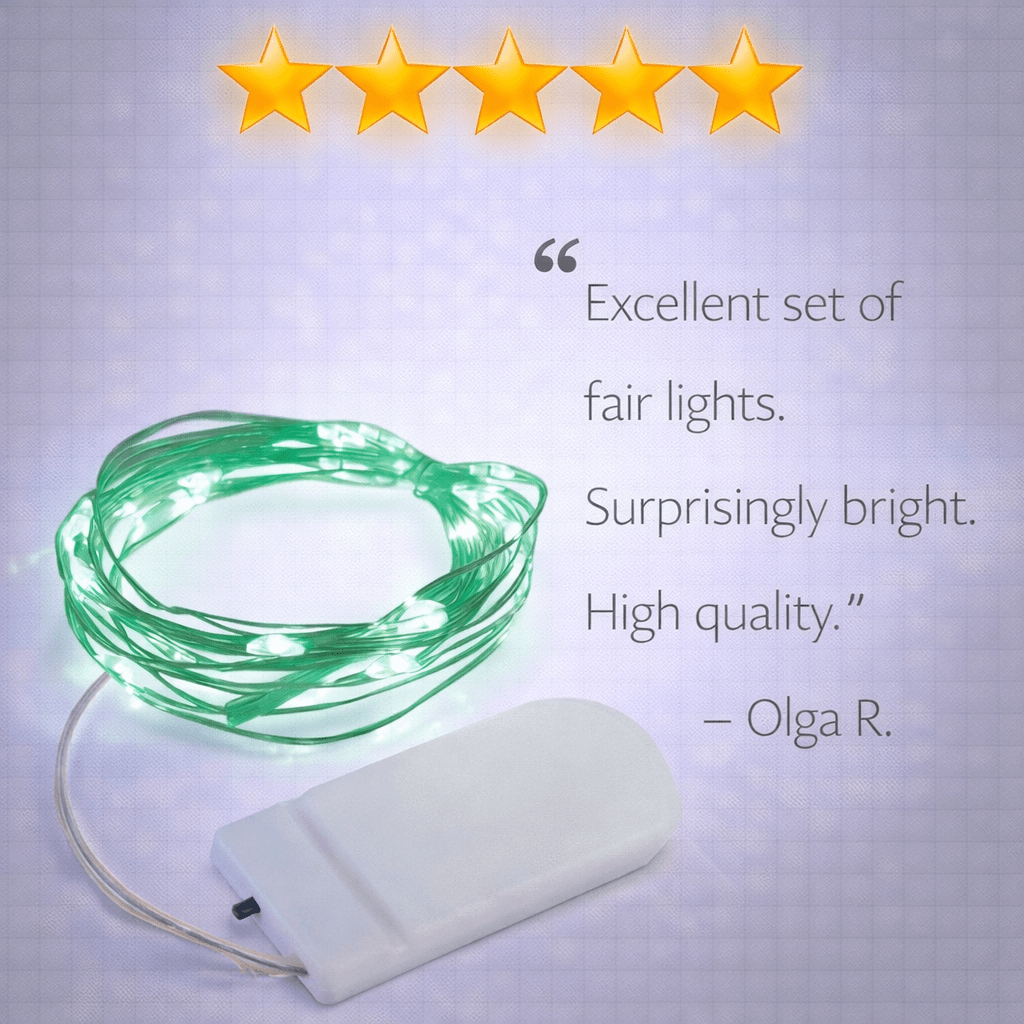 Great for highlighting small retail displays or giving bedrooms a soft, personal glow. The thin, flexible wire can be shaped around jars, mirrors or picture frames so the lights sit out of the way, while the compact battery pack hides behind objects for a tidy finish. They add subtle sparkle that brings focus to a corner or table without being bright or distracting.