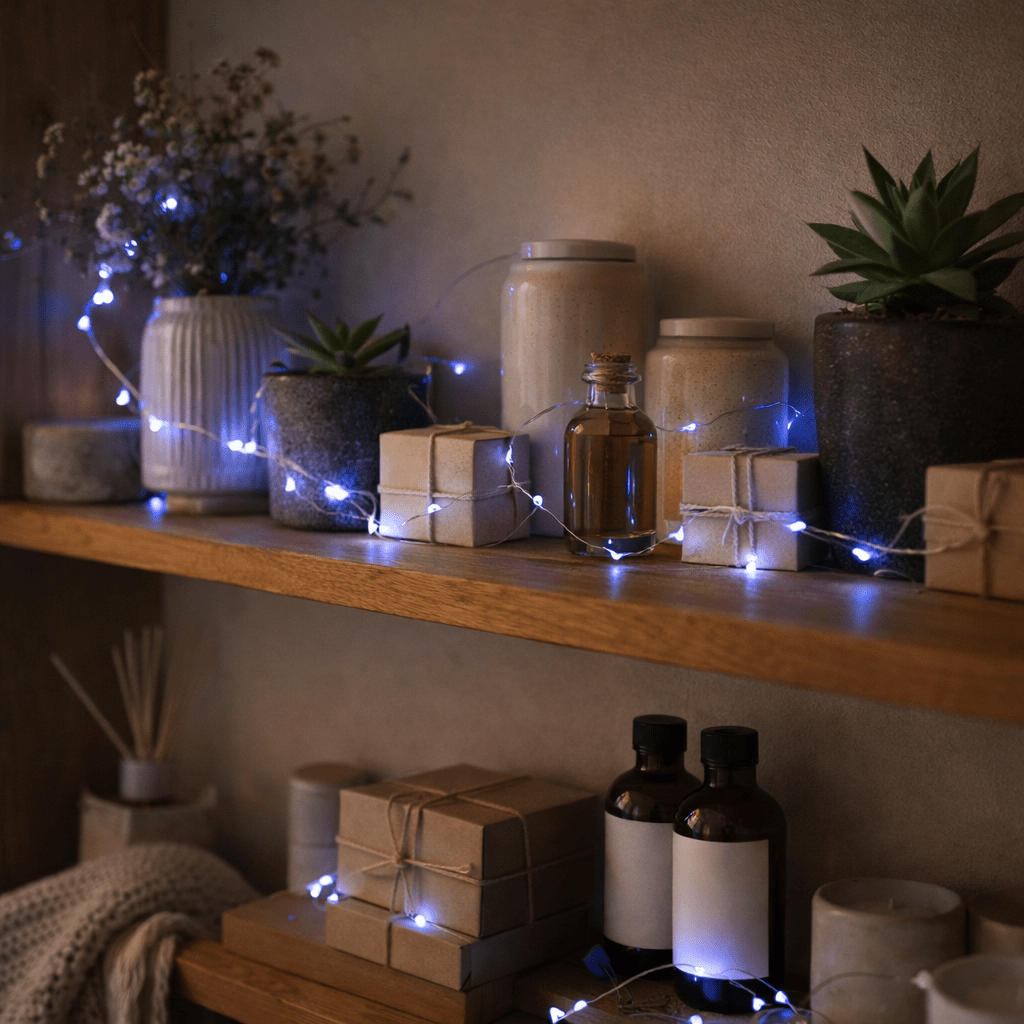 They are great for accenting shelves, counters, and product displays, or creating a cosy atmosphere at home.