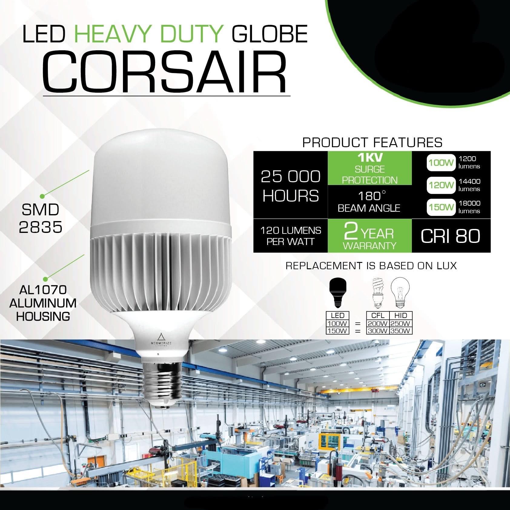 The Corsair is a powerful and reliable HID replacement lamp designed to meet the demands of industrial and commercial spaces. With an E40 base and 5700K colour temperature, it delivers crisp, clear light ideal for high ceilings and wide areas. The built-in aluminium heat sink and advanced thermal design ensure excellent heat dissipation, while the isolated power supply enhances durability and safety.