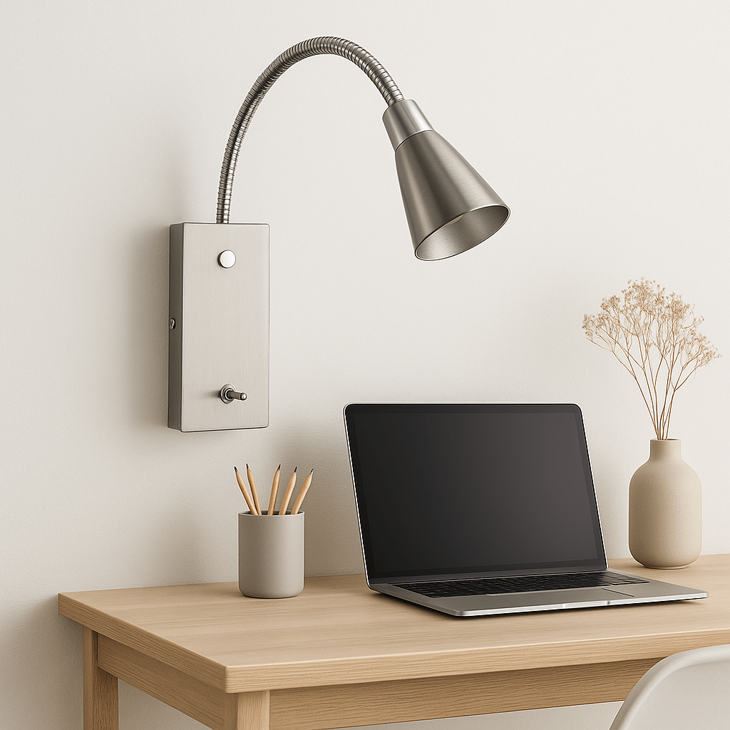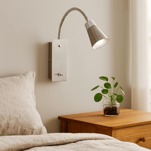 The Satin Chrome Wall Light - Adjustable Gooseneck is an elegant wall bracket finished in polished and satin chrome, featuring a flexible gooseneck arm for easy light adjustment. Perfect for those seeking stylish accent or task lighting in various settings, this wall light includes a 50W GU10 bulb with an electronic driver, ensuring seamless operation. Its compact design is ideal for functional use in bedrooms, offices, or study areas.