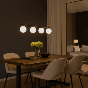 The Linear 4 Light Pendant Black has an IP20 rating, making it suitable for indoor use in areas like dining rooms, kitchen islands, and entryways.