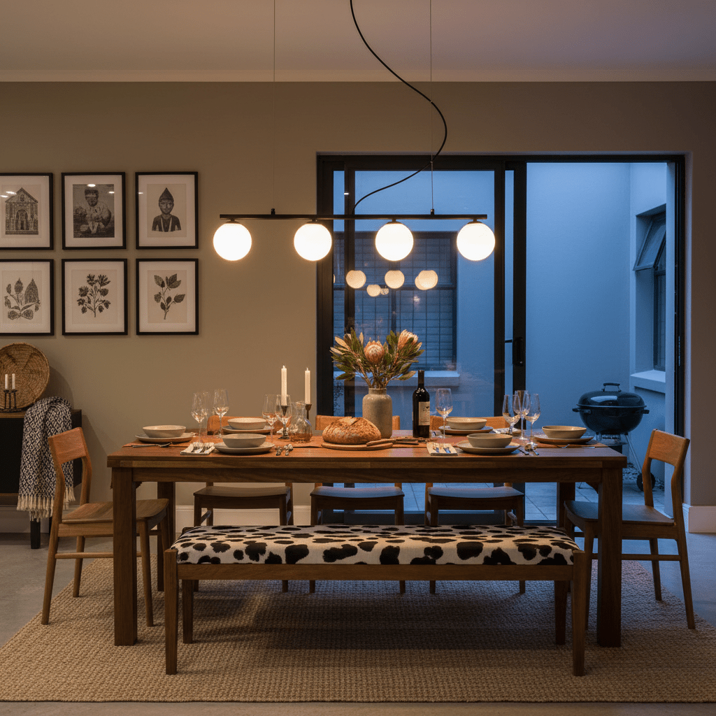 This pendant suits long surfaces where even, pleasant light matters — especially above a long dining bench or island bench. Its linear shape spreads light across the workspace so everyone can see clearly without harsh glare. It keeps sightlines open, helping a room feel tidy and modern rather than cluttered. Perfect for family meals or casual entertaining, it gives a neat, considered look that suits contemporary homes.