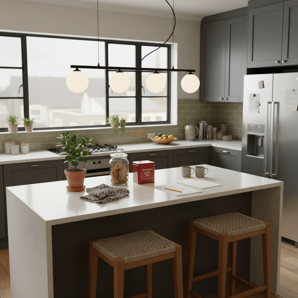 Kitchen island prep lighting: Mount above a standard kitchen island to blend style with practical task light for chopping, plating, and serving.