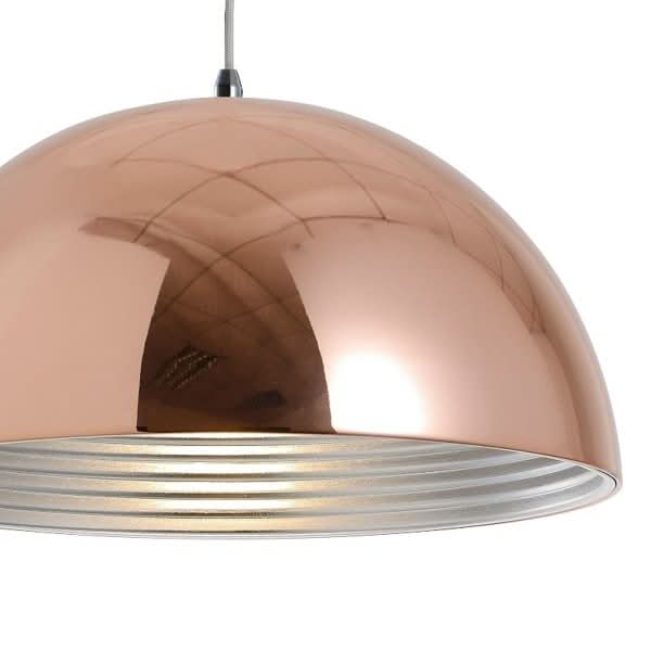 Drawing on the beauty of polished copper, the Lucia 400 Copper Pendant lamps up any interior with an exquisite finish. The ribbed inner adds a luminescent gleam, giving your space a tasteful and elegant touch. With its unique appearance, the Lucia 400 Copper Pendant will elevate any interior.