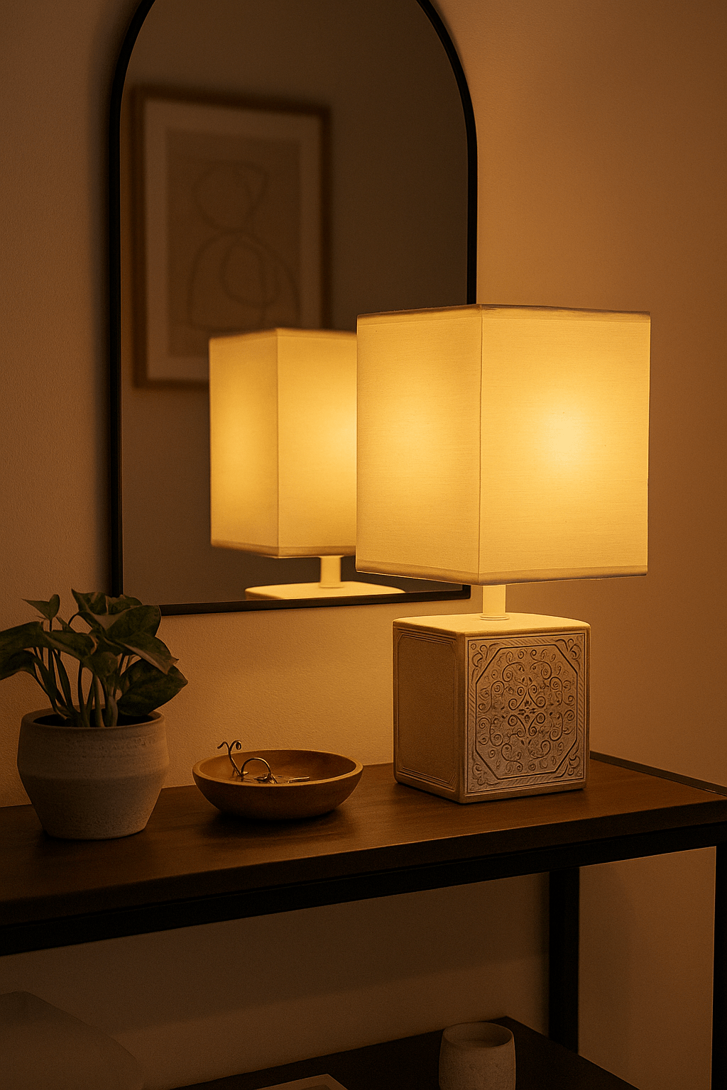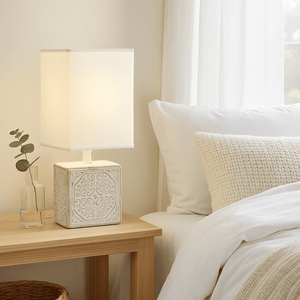 Position the lamp on your nightstand using a soft white bulb to create a gentle glow for bedtime reading and relaxation.