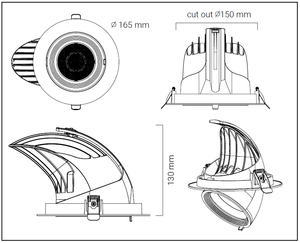 - Dimensions: D165mm, Cutout D150mm, Height 130mm