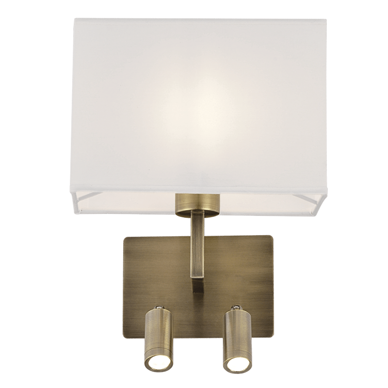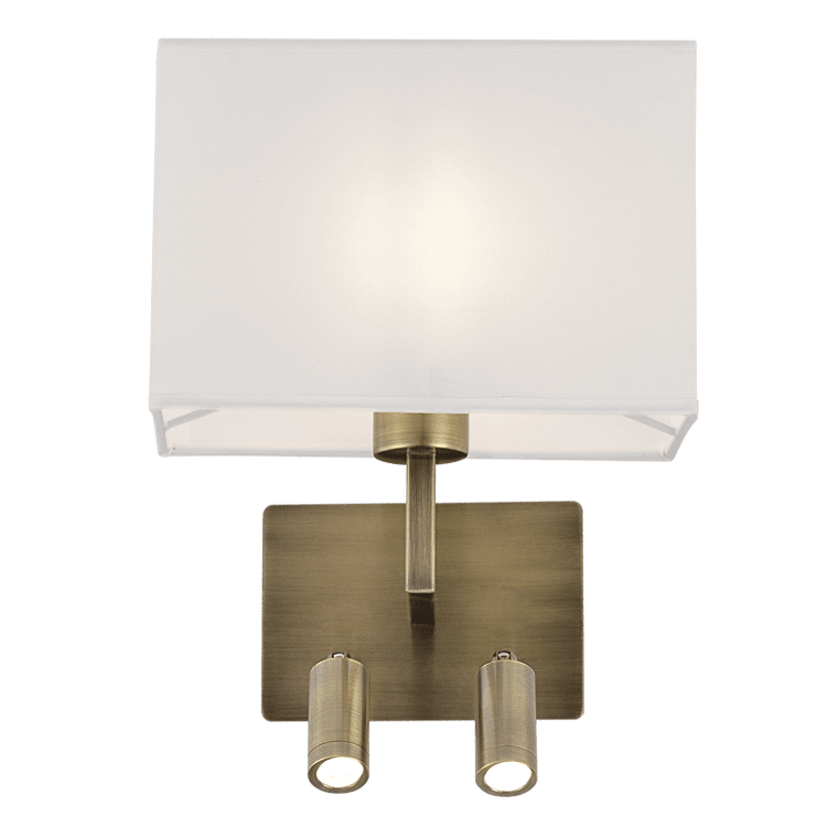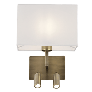 Introducing the Mata Antique Brass Bedside Wall & Reading Light, a perfect blend of classic design and modern utility. With its antique brass finish and elegant white shade, this light fixture adds a touch of sophistication to any room. Ideal for those who value both aesthetics and practicality, it features integrated LED reading lights for convenience and efficiency.