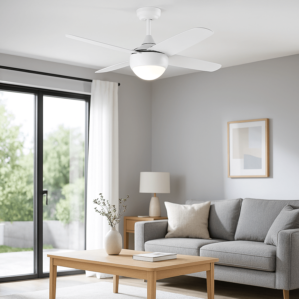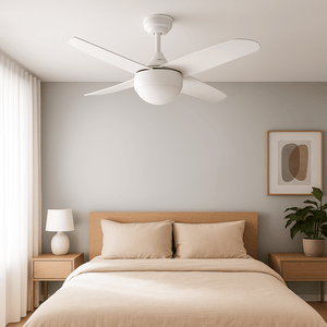 Matt White Ceiling Fan - Opal Glass Shade
