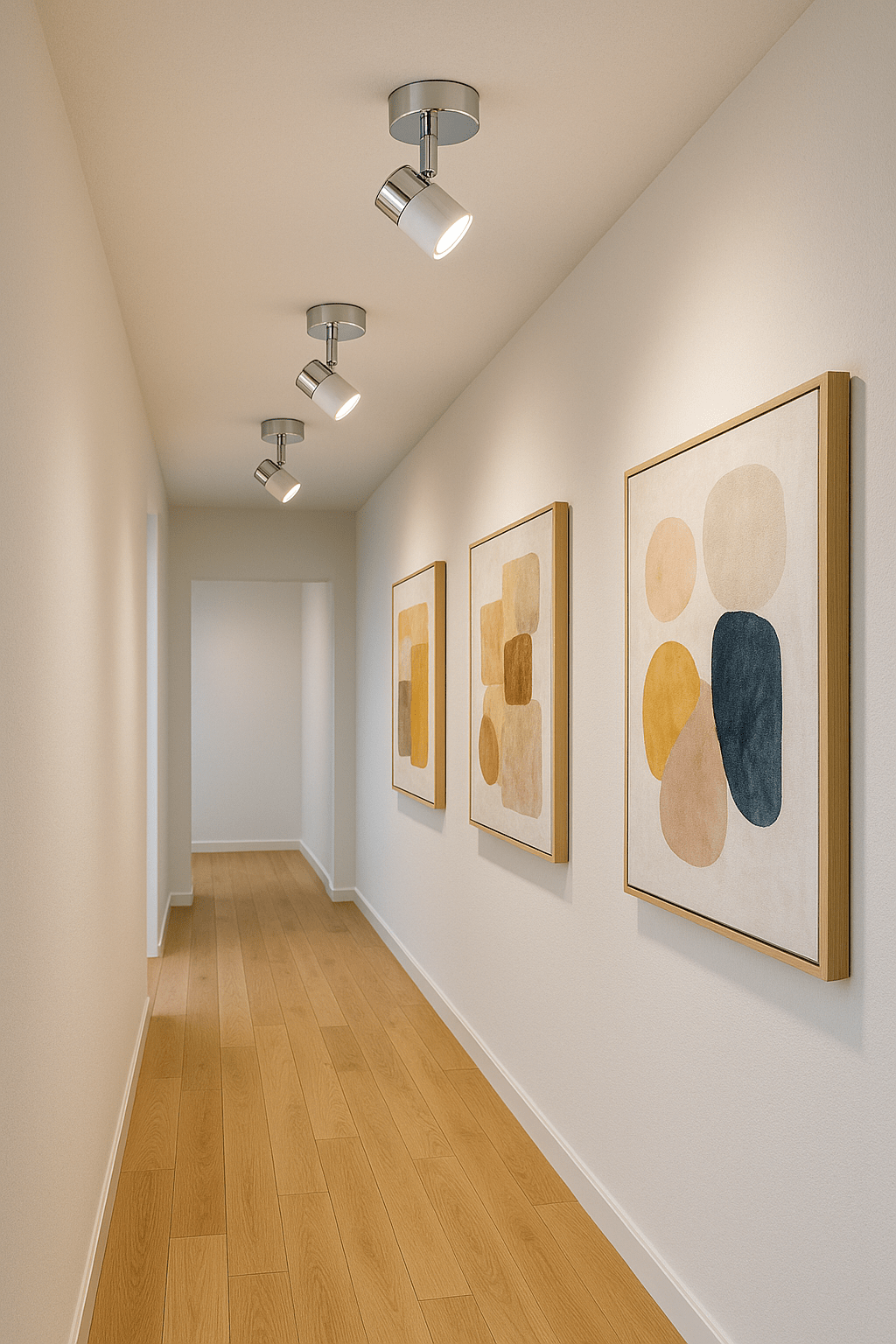 Practical Tip: Install multiple spotlights in strategic locations to highlight art pieces and create a dynamic ambiance.