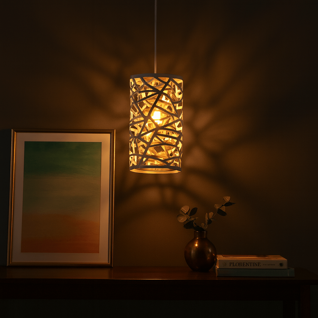 - Metallic interior enhances light warmth and style