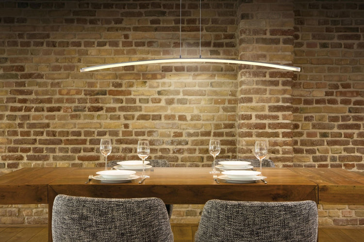 The Maybe Someday Bow LED Pendant introduces a touch of modern sophistication to any kitchen island or dining room. With its elegant bow-shaped LED light and stylish aluminium frame, this pendant light provides ambient illumination while adding a timeless, upscale feel to any decor. Make a statement with this exquisitely crafted lighting fixture.
