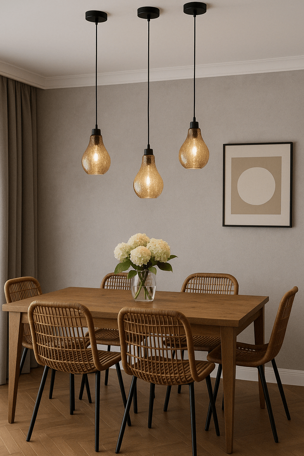 Styling Tip: Hang multiple pendant lights at varying heights over your dining table to create a dramatic lighting effect.