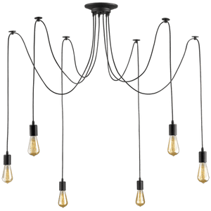 Elevate your interior with the Black Metal Cord Pendant PEN452/6. This stylish lighting fixture features a sleek black finish and a modern design that complements any contemporary setting. Ideal for adding a touch of sophistication to your living space. 2 Year Warranty!