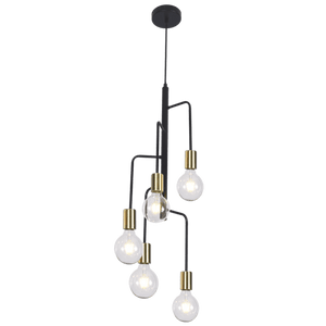 It accommodates 5 x E27 bulbs (not included); wattage and lumen output will vary based on the bulbs you choose.