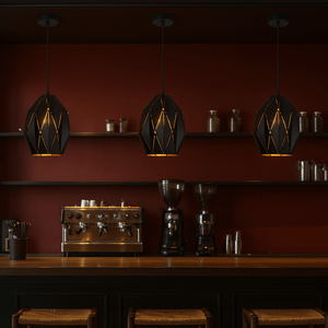 Install multiple pendants in a café or bistro to craft a cohesive, inviting atmosphere that blends modern design and functionality.
