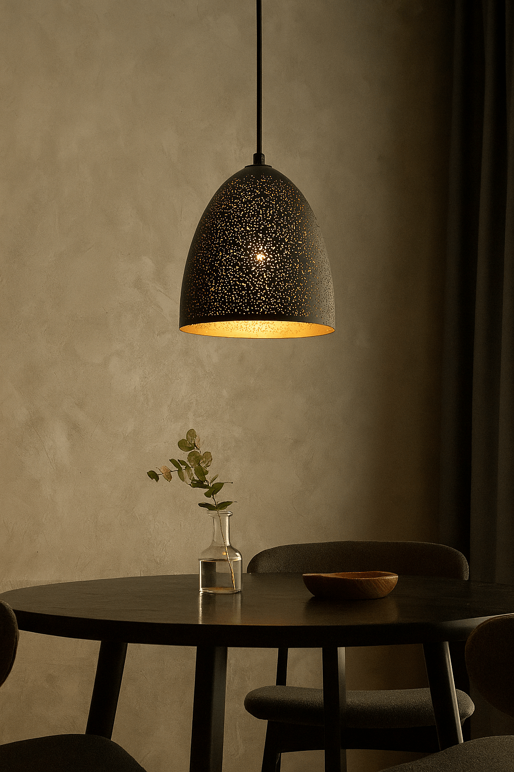The Black Metal Pendant Starry Small is a perfect blend of modern design and functionality, ideal for enhancing the ambiance of any room. With its sleek black metal finish, this pendant light adds a touch of sophistication to your decor. It’s designed to accommodate a single E27 bulb, allowing you to customize the light to suit your mood and setting. This product comes with a 2 Year Warranty!