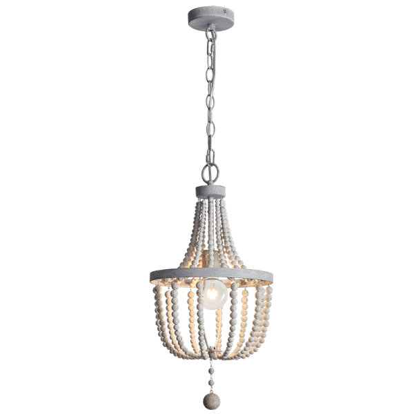 The CH893 features a combination of metal and wood beads with an elegant white-washed finish, blending rustic charm with modern elegance.