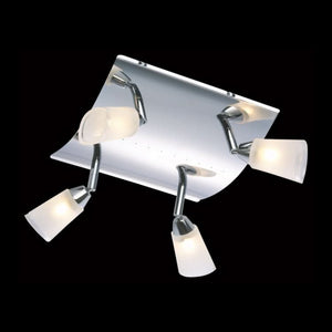The MG-VELA/4 combines modern design with functionality, featuring four adjustable spot lights on a satin chrome square plate. Its sleek and versatile design makes it ideal for enhancing any room's ambiance with adaptable lighting solutions.
