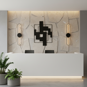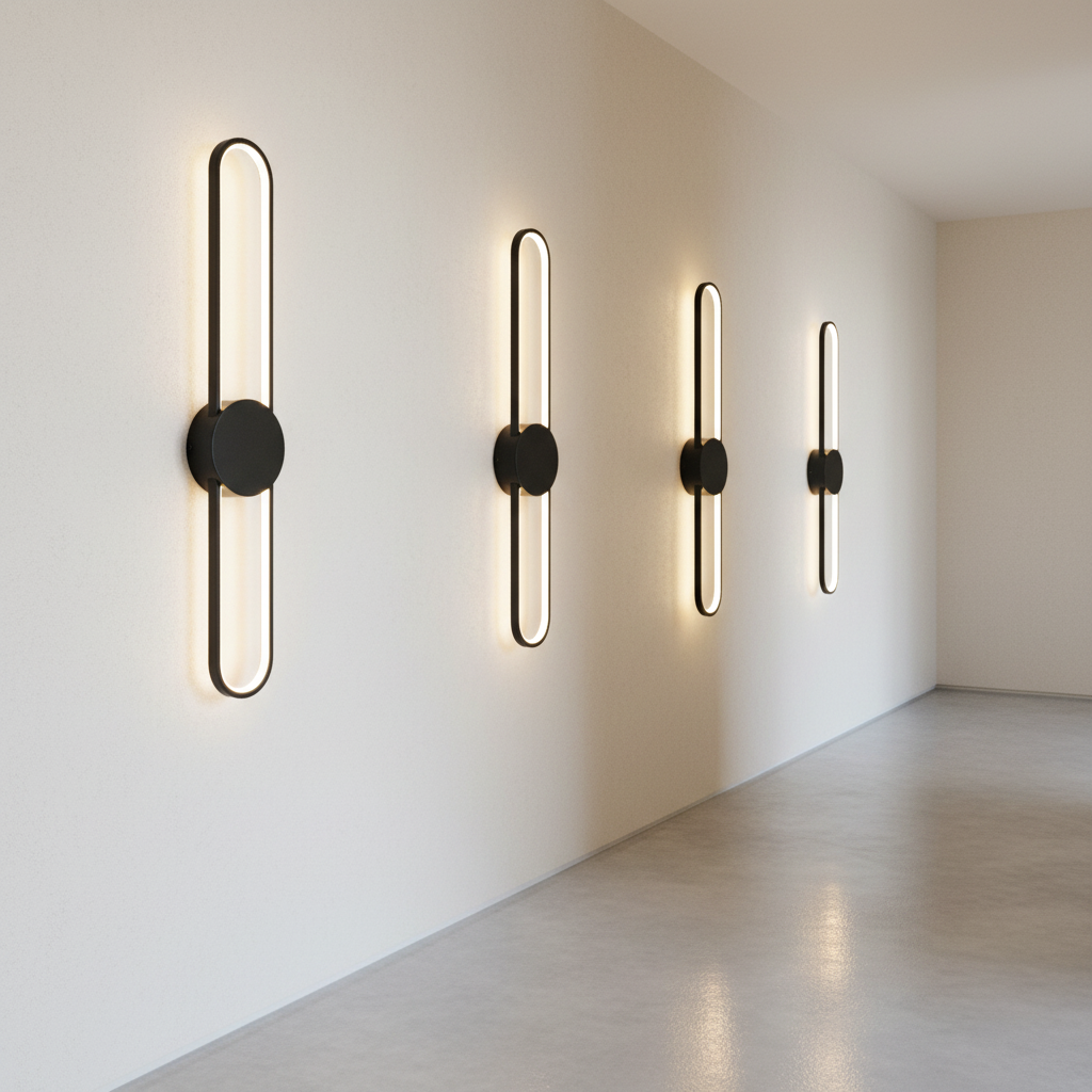 This sleek vertical LED wall fitting brings a clean architectural touch to contemporary interiors. With its slim elongated frame and circular centre detail, it works beautifully as a statement wall light in passages, bedrooms, living rooms, and modern office spaces.