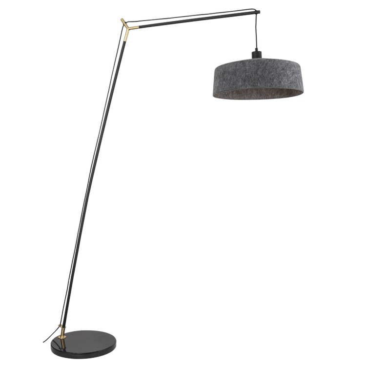 This elegant floor lamp features a marble base and a grey felt shade, offering a sophisticated touch to any space. Its sleek design is perfect for modern interiors, providing both style and functionality. The foot switch allows for easy operation, making it a convenient addition to your home or office.