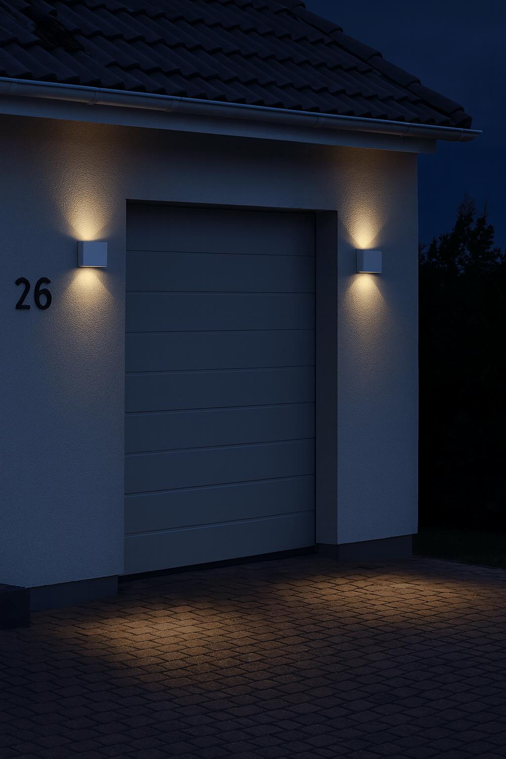 Mount beside front doors to highlight entryways, showcase architectural features, and warmly welcome visitors with balanced up-and-down illumination.
