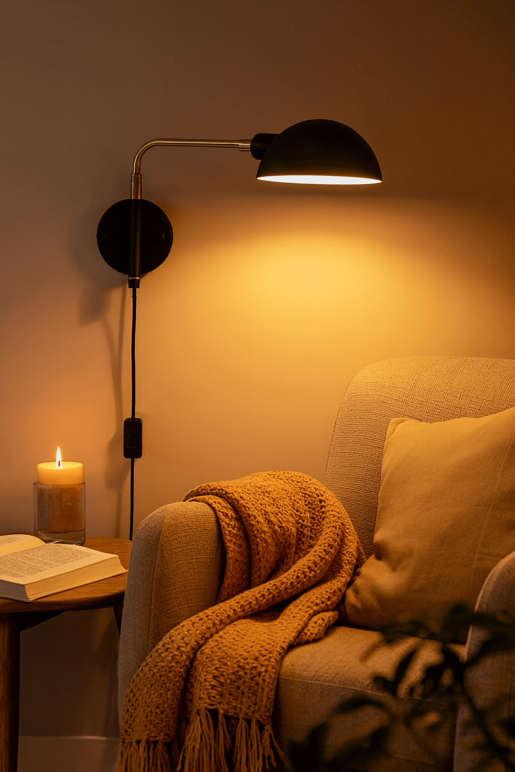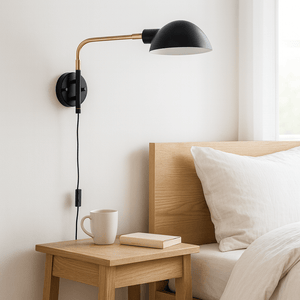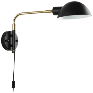 Bring effortless style and focused illumination into your space with this modern wall-mounted lamp. The elegant combination of sand black metal, antique brass detailing, and a crisp white inner shade creates a warm, contemporary look perfect for bedside reading, living rooms, or study areas. The built-in cord and switch ensure easy installation with no hardwiring required.