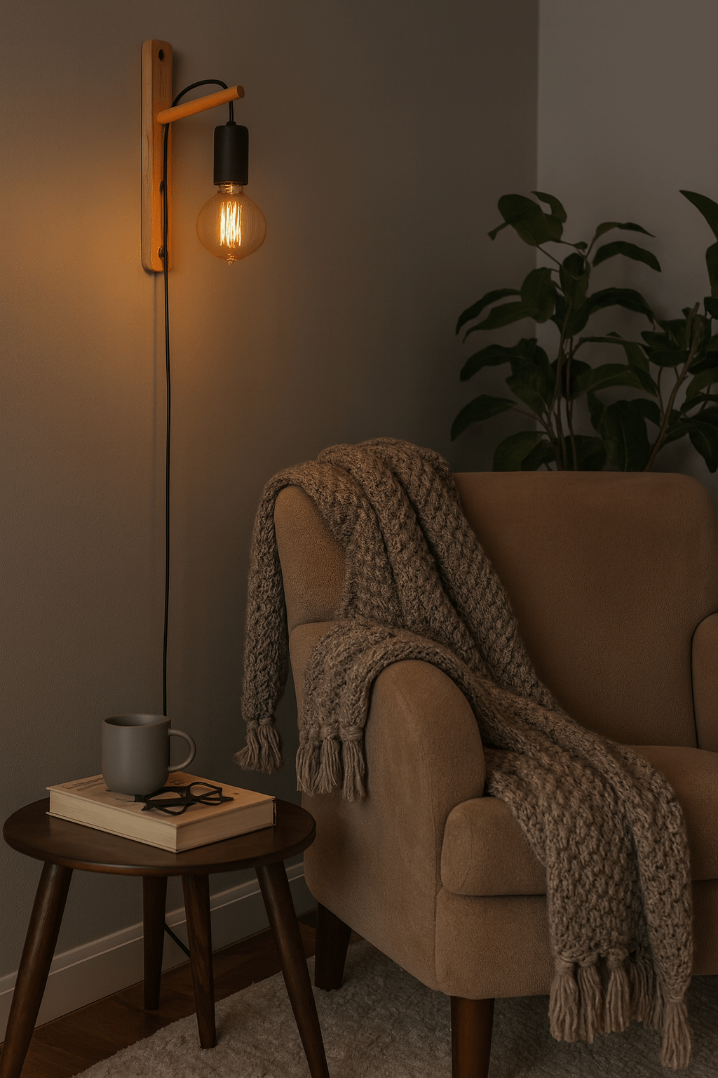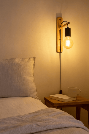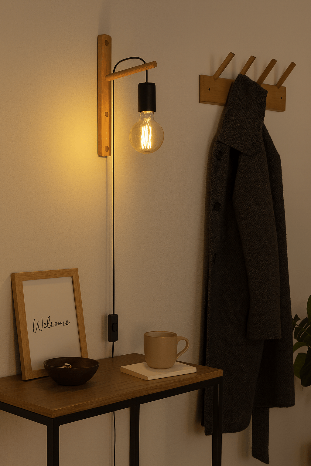 Styling Tip: Pair with a warm white (2700–3000K) vintage filament E27 to enhance the wood accents and create cosy ambient lighting.