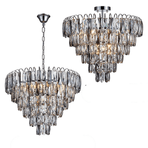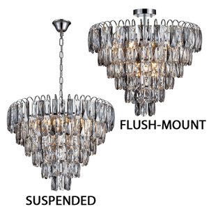 This stunning Polished Chrome and Crystal Pendant is the perfect centerpiece to add a touch of elegance and sophistication to any room. Its dual mounting options offer flexibility, allowing you to customize the look to suit your space.