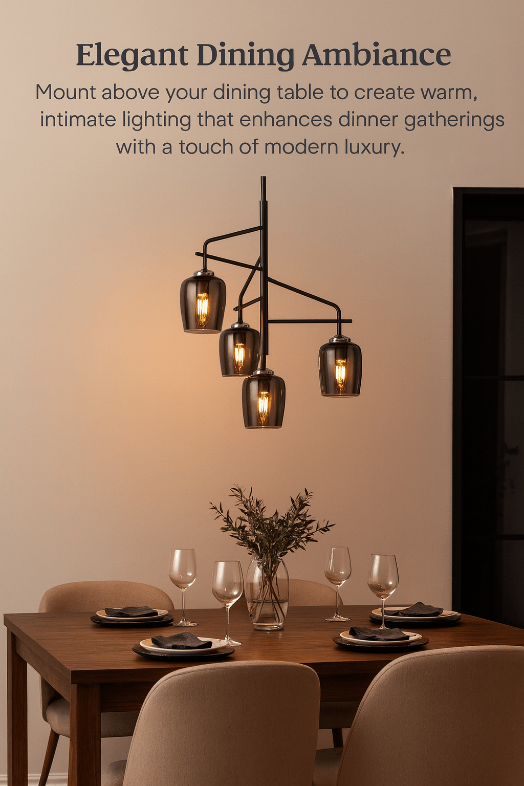 Mount above your dining table to create warm, intimate lighting that enhances dinner gatherings with a touch of modern luxury.