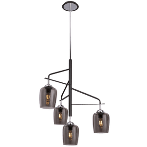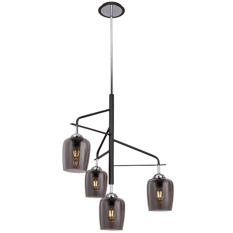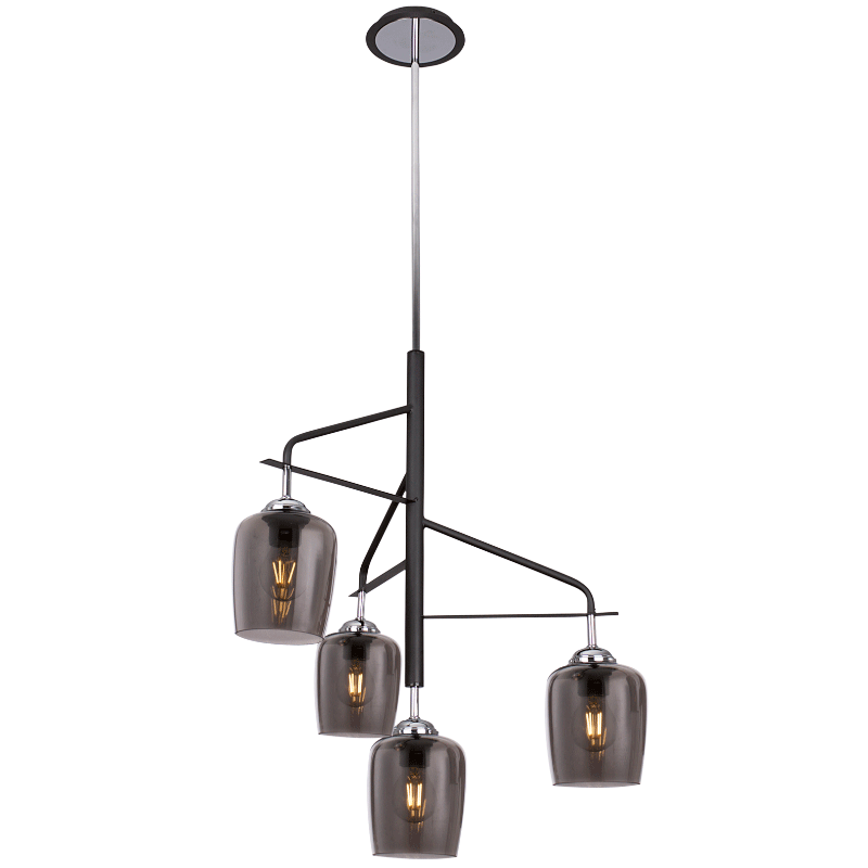 Polished Chrome Chandelier with Metal and Smoke Colour Glass