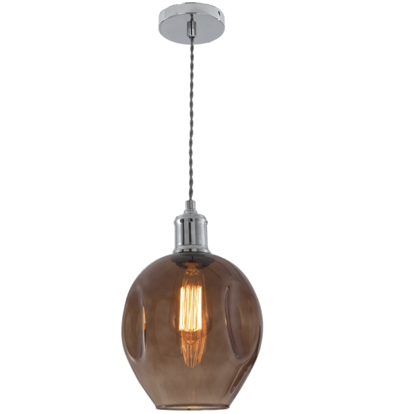Polished Chrome Pendant with Smoke Colour Glass PEN611