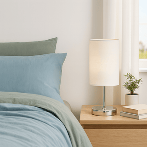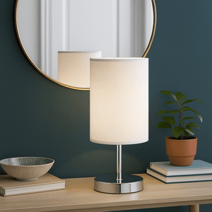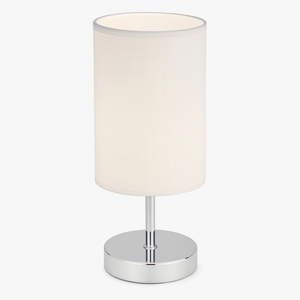 This beautifully crafted table lamp features a polished chrome finish and a white fabric shade, exuding a sleek, modern design suitable for contemporary and traditional settings. Ideal for homeowners seeking subtle elegance and warm ambient lighting, it stands compact at 280mm, fitting perfectly on small tables or desks where a touch of class is desired.