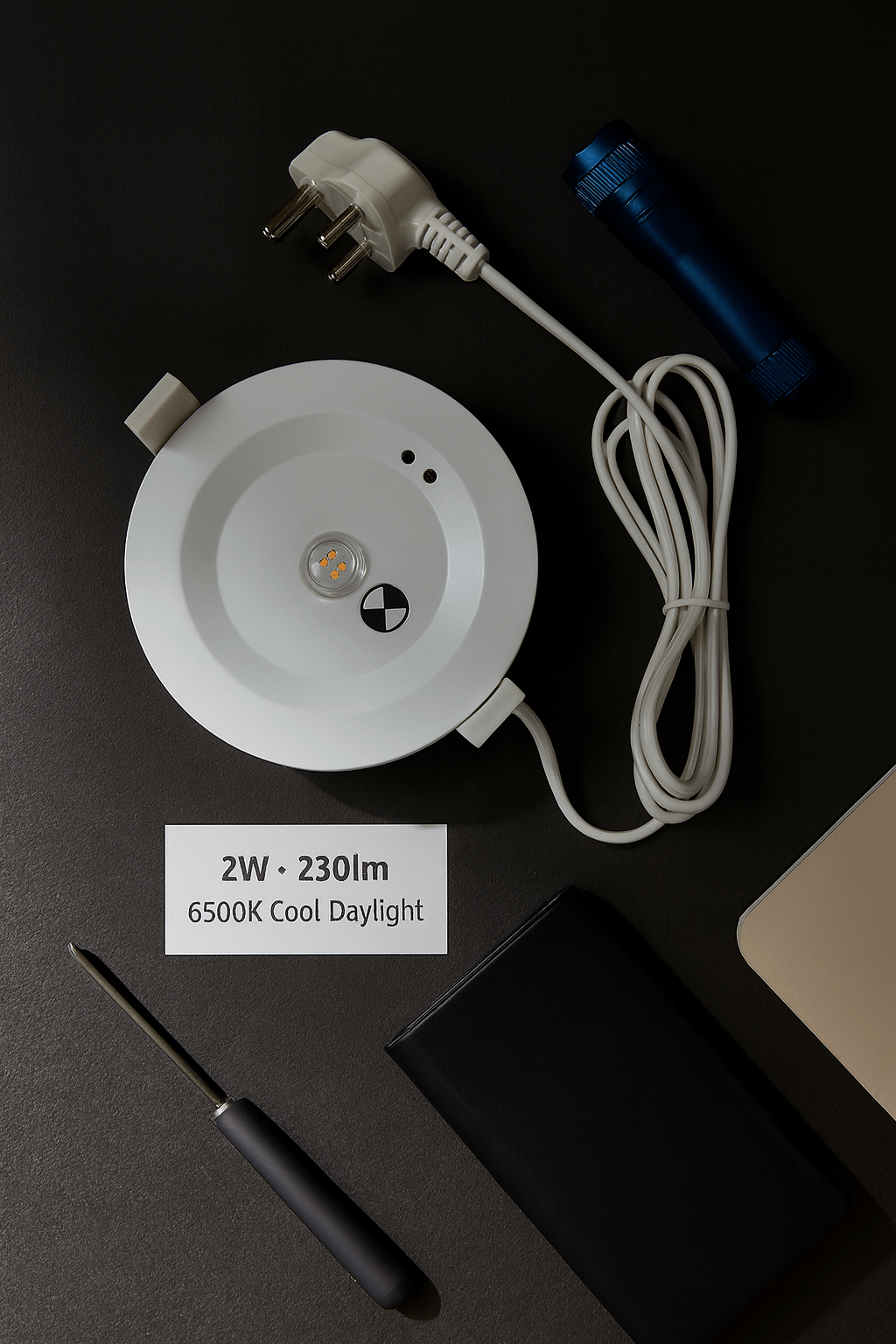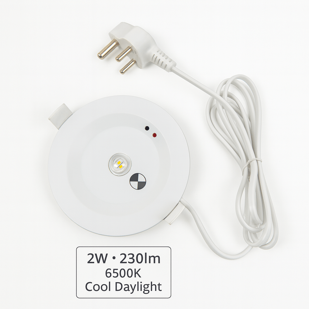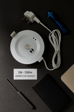 A compact and efficient downlight designed for reliable emergency lighting. This integrated 2W LED SMD fitting delivers 230 lumens of cool daylight (6500K), ensuring visibility when it matters most. With its built-in battery backup, it continues to provide light during power outages, making it a dependable choice for residential, commercial, and safety-critical installations.