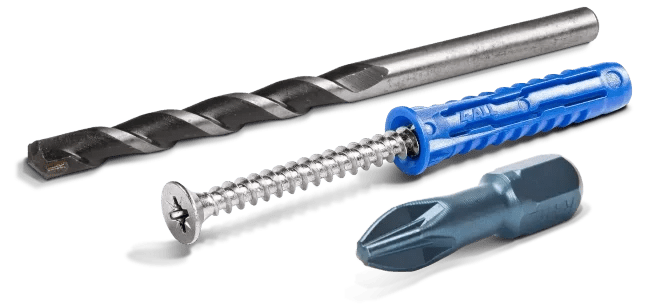 - Matched plug/screw sizes for optimum pull-out strength
