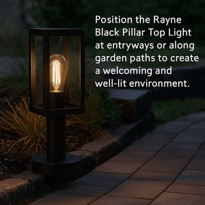 Practical Tip: Position the Rayne Black Pillar Top Light at entryways or along garden paths to create a welcoming and well-lit environment.
