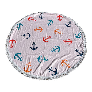 Unleash your inner sailor with our Round Beach Towel - Anchors! Perfect for a day at the beach or pool, this towel features a circular design and bold anchor print that will make a statement. Soft and absorbent, it's the perfect combination of style and function. Sail away in comfort and style!